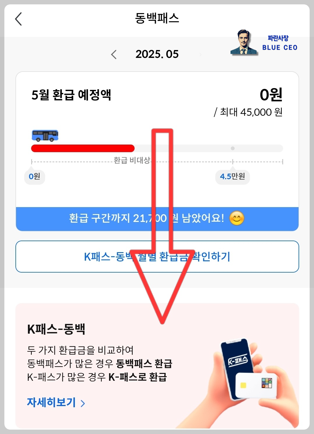동백패스 들어가면, 환급예정 금액과 내가 지금까지 교통비로 얼마나 지출했는지 알 수 있는데