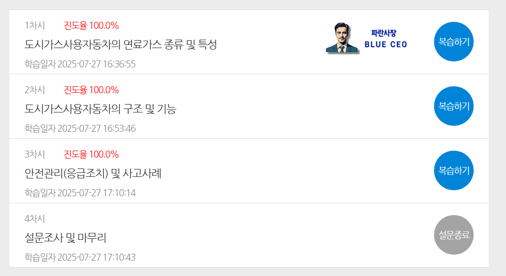 다시 한 번 말하지만, '도시가스사용자동차운전교육(버스등)' 이니까 잘 확인하길 바란다.