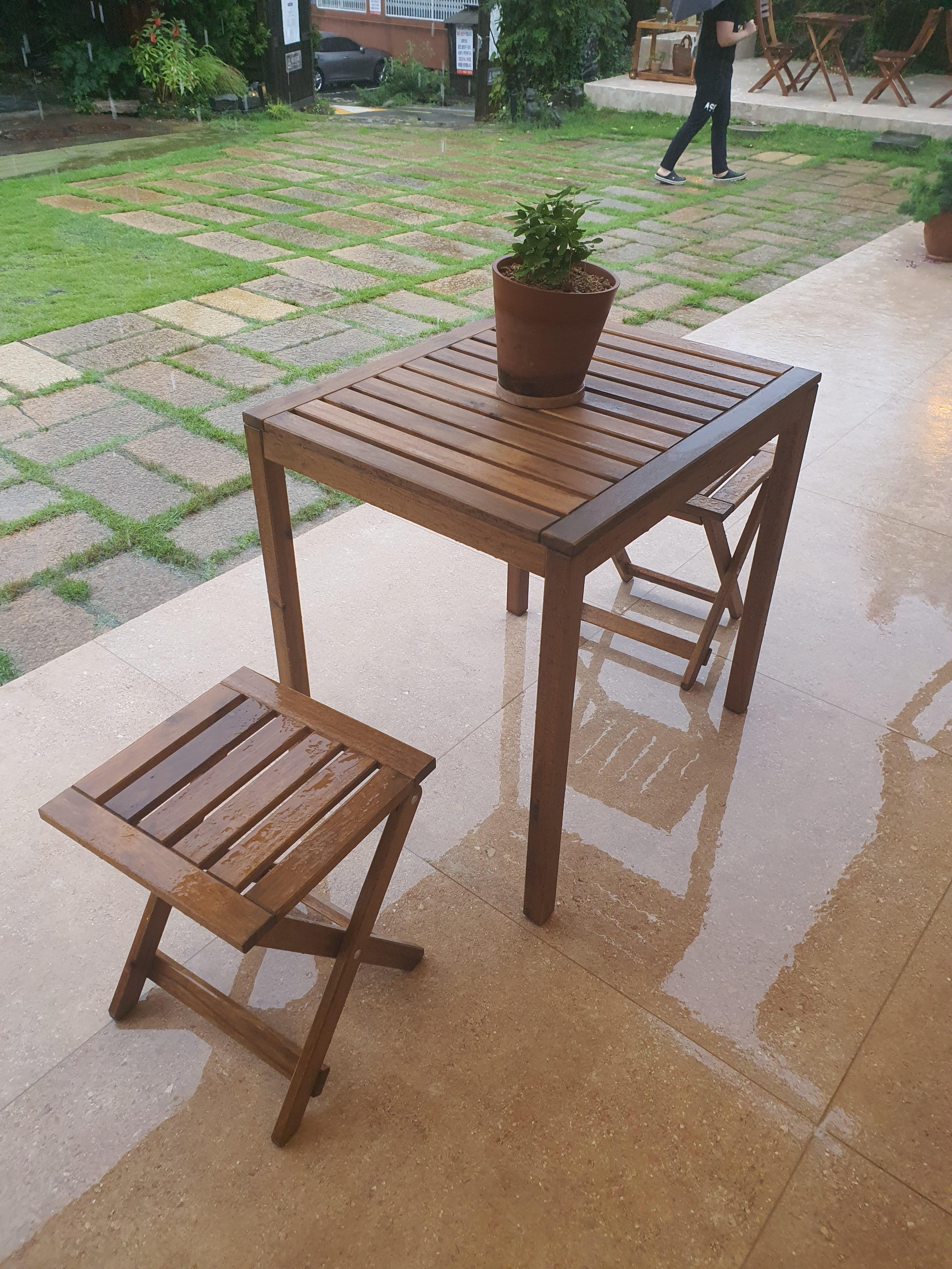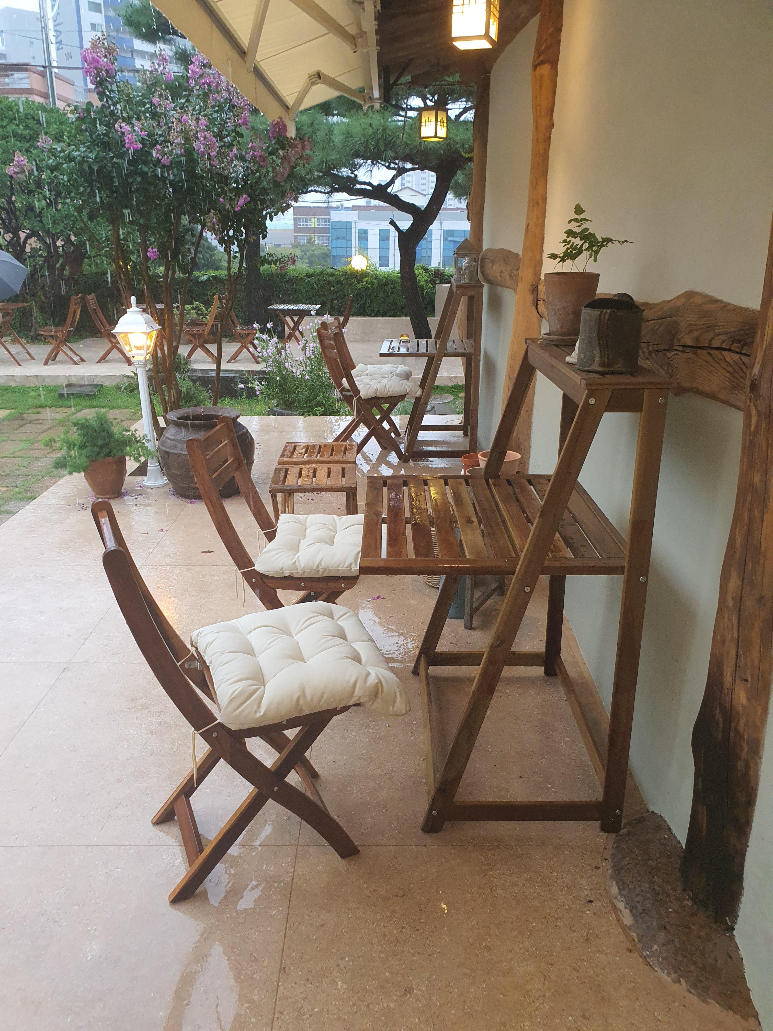 비가와서 사람들이 다 안에서만 있었지만, 바깥에도 카페 내부처럼 한옥느낌을 잘살려서 구비되어있다.