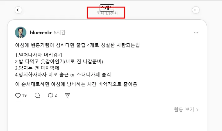 오늘은 스레드 조회수를 확인하는 방법이다.