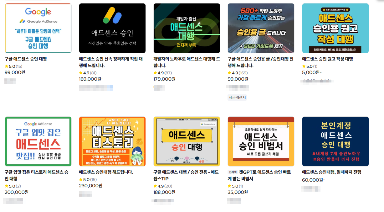 크몽에 "애드센스 승인 대행"이라고 검색하면 나오는 대행업체들이다.
