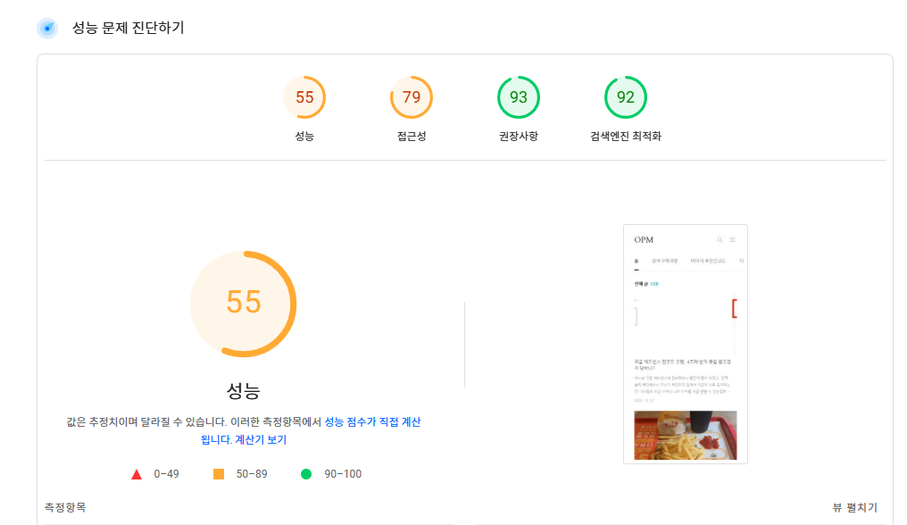 성능과 접근성의 부분에서 점수가 매우 낮게 나왔던것 ㅠ