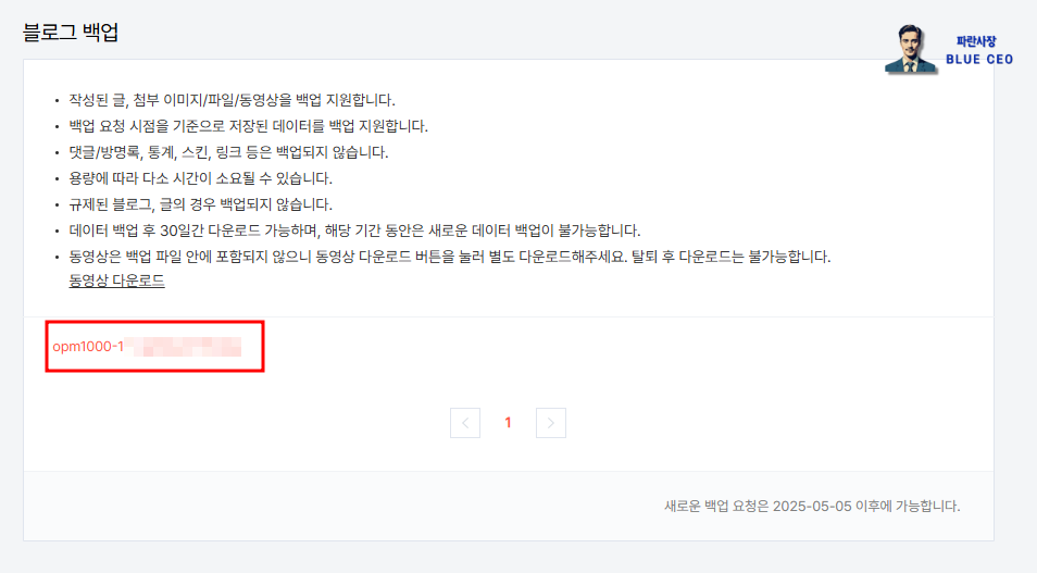 그후 블로그 데이터를 백업해놓으면된다. 동영상의 경우 별도로 다운받아서 보관 해놓아야한다.