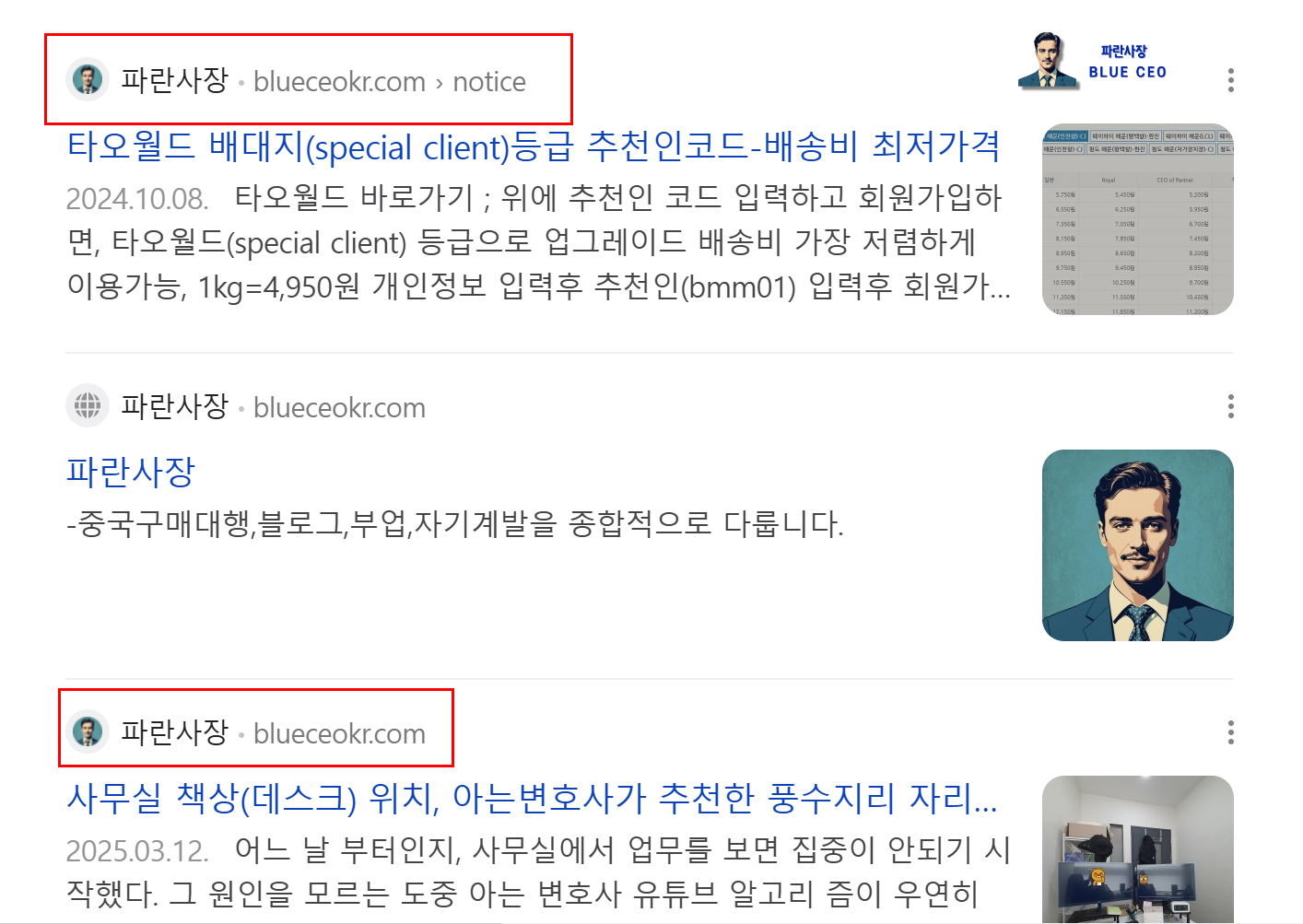 위 사진을보면 '파비콘'이 등록된 블로거가 눈에도 더 잘뛰고, 브랜딩된 거 같은 모습에 신뢰도가 생긴다.