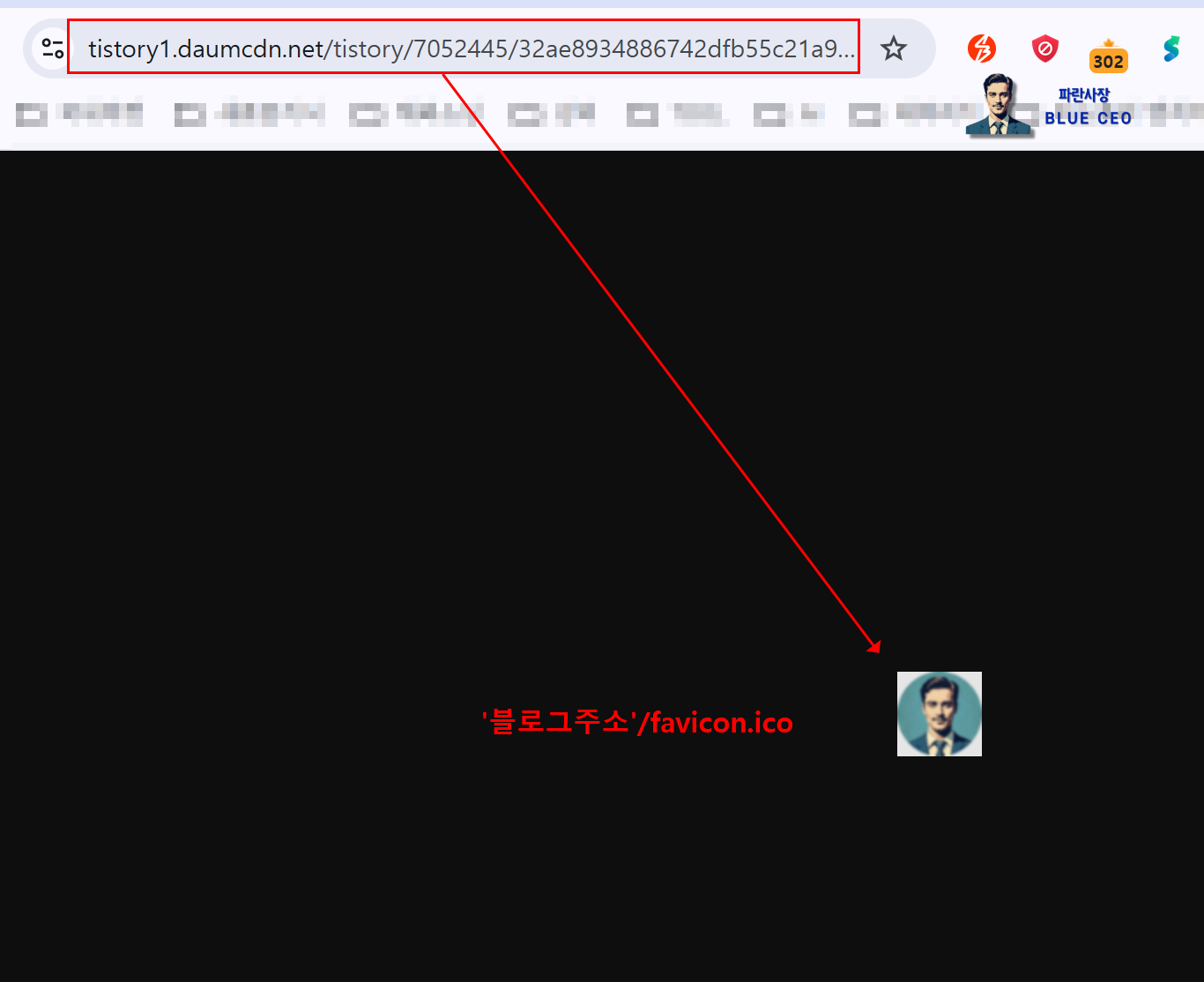 "본인의 블로그 주소 뒤에 /favicon.ico 를 입력하면, 나의 파비콘 링크(link)주소가 나온다. "