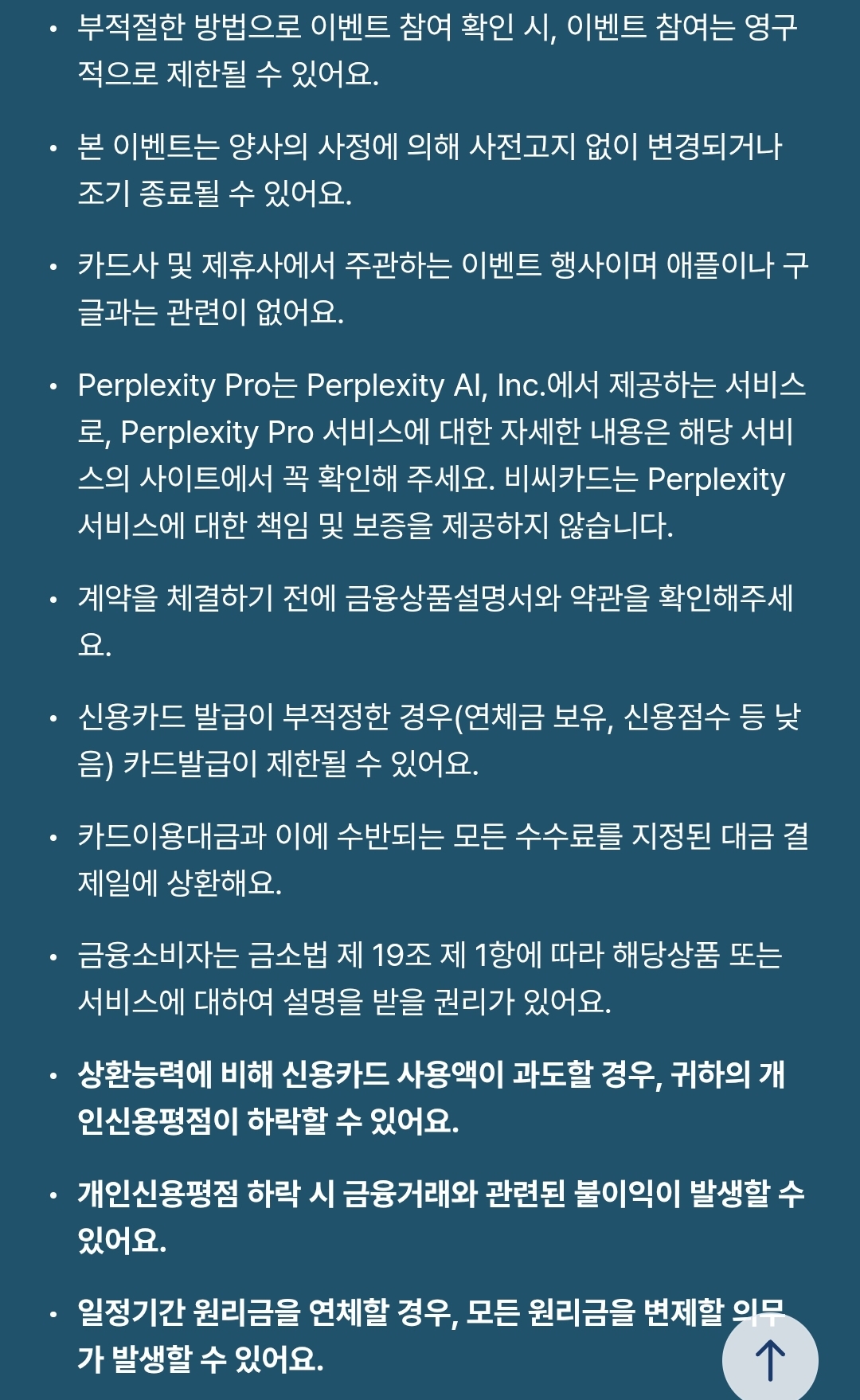 이번 이벤트는 페이북&퍼플렉시티 콜라보 이벤트라서 BC카드로 월에 5만원 이상만 사용한다면 누구나 1년 이상 퍼플렉시티 프로(PRO)버전을 무료로 사용가능하다.