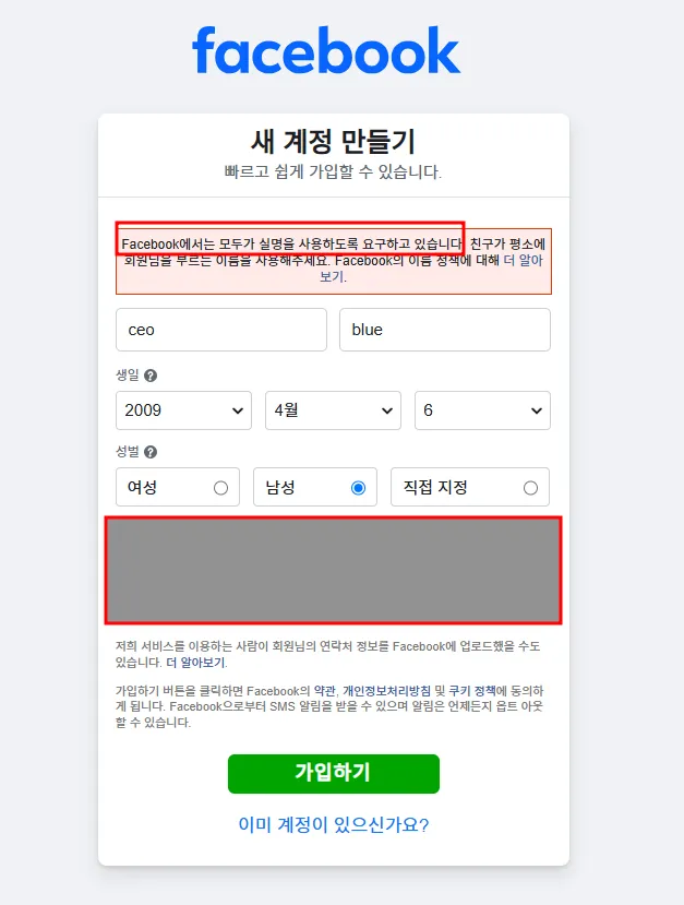 페이스북은 회원가입하려면 반드시 '실명인증'을 해야한다.